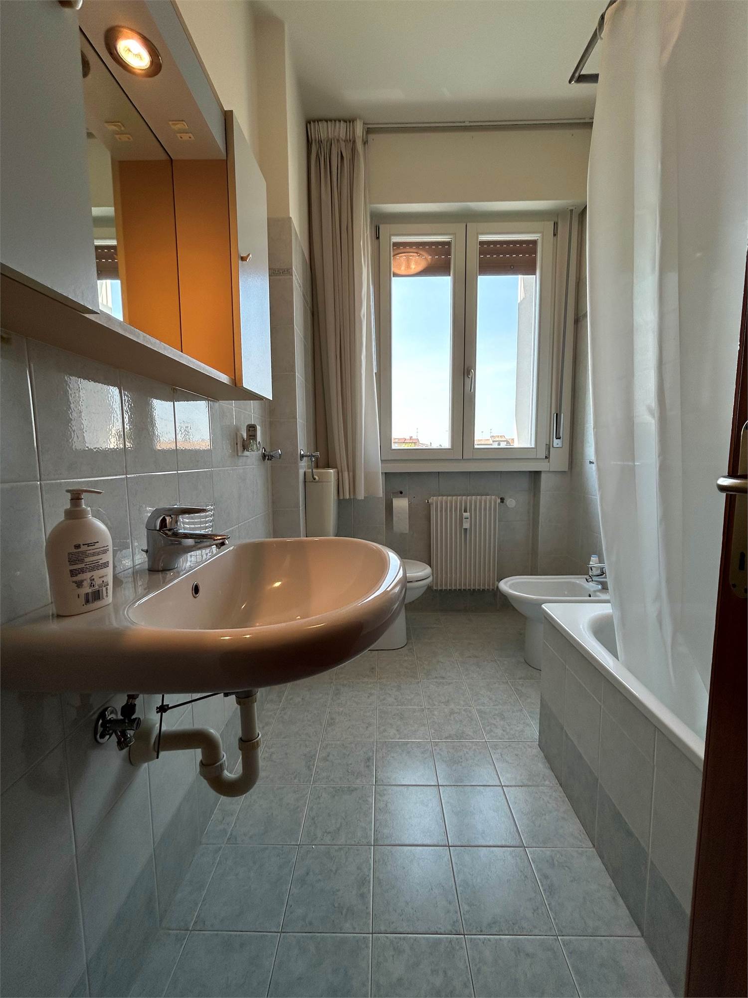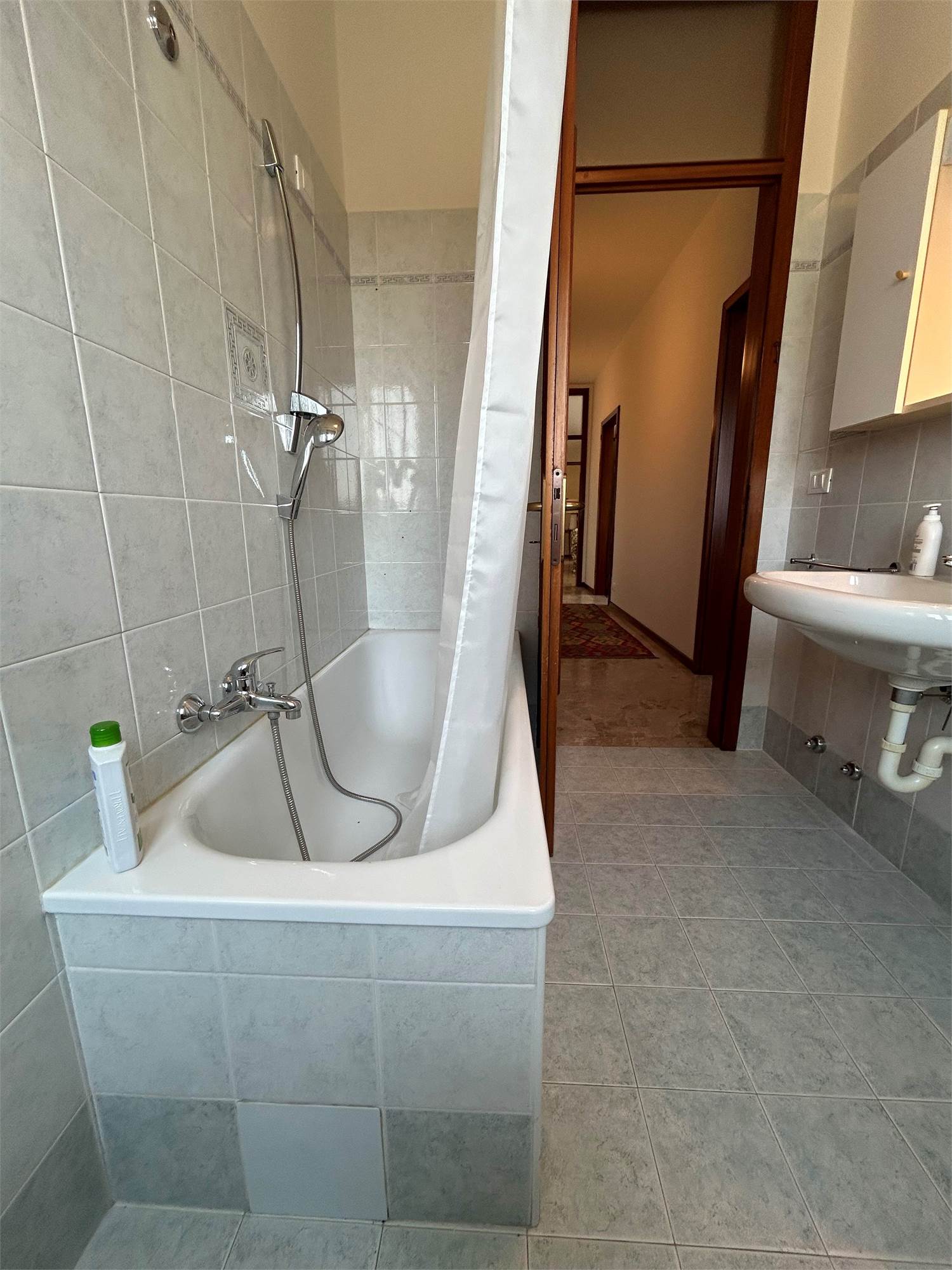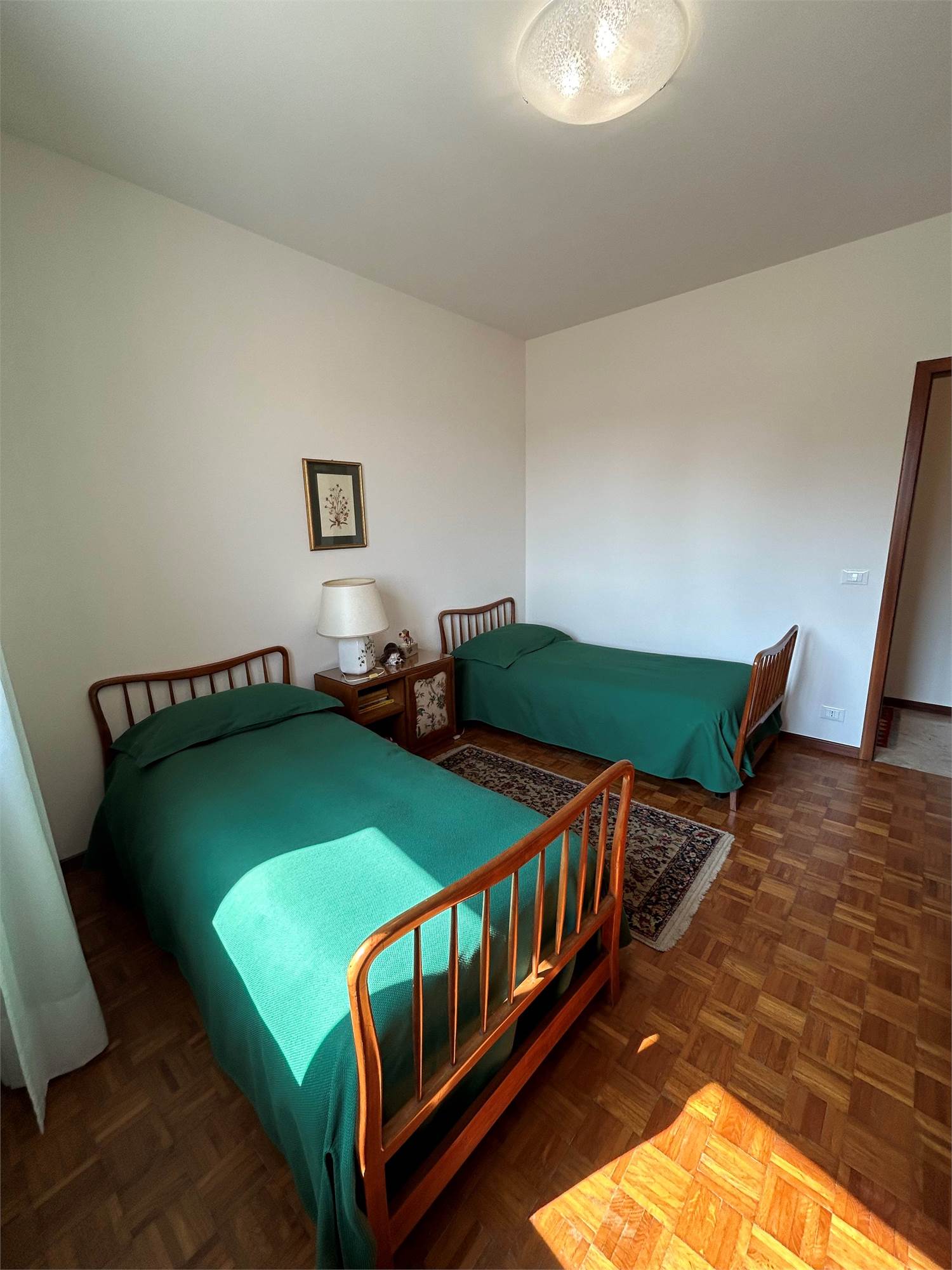 Con una superficie di circa 100 mq, l'appartamento è esposto a Sud, garantendo un'ottima luminosità durante tutto il giorno. Il layout interno si sviluppa con un ingresso che conduce alla cucina separata con accesso diretto a un ampio terrazzo di circa 10 mq, ideale per momenti di relax, e adiacente al soggiorno spazioso. La zona notte, accessibile tramite disimpegno, è composta da una camera singola, una camera matrimoniale e un bagno completo con vasca.