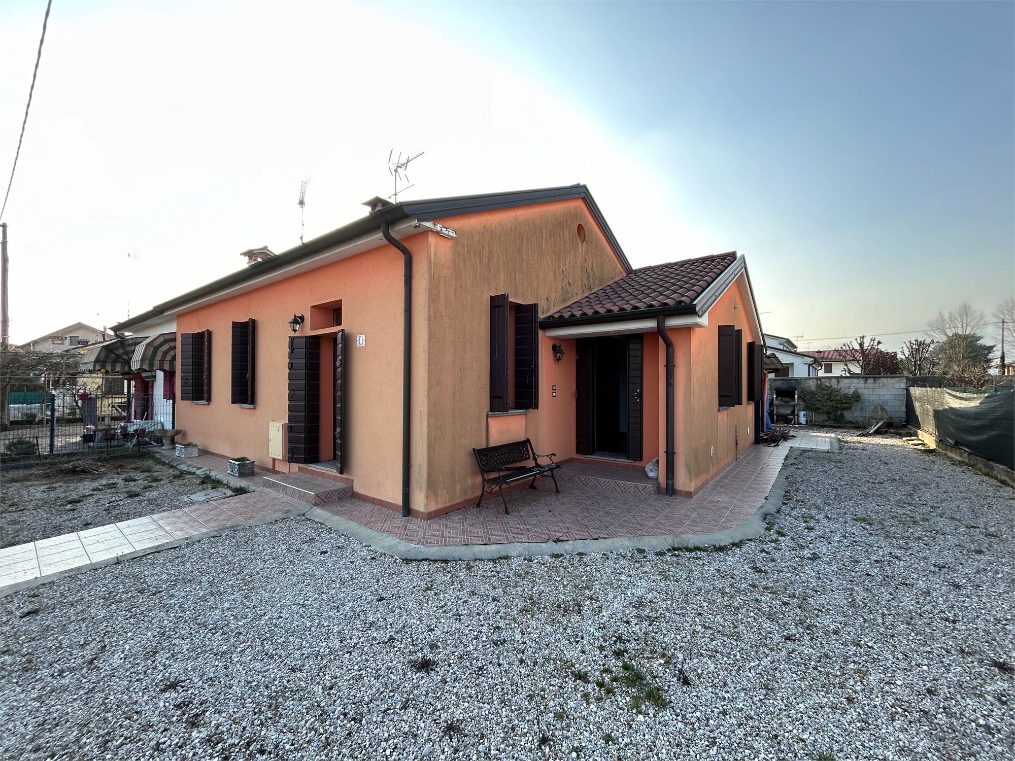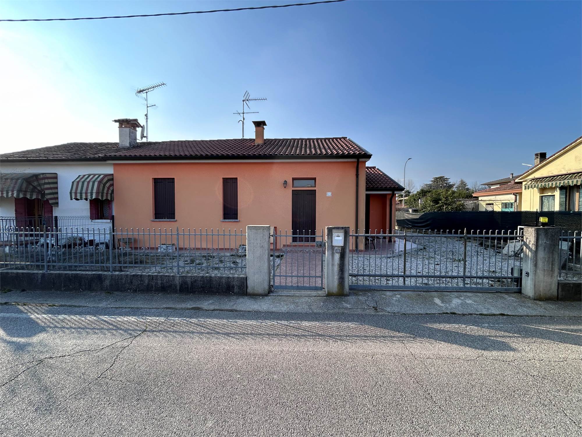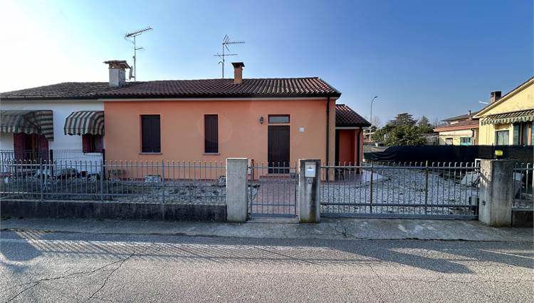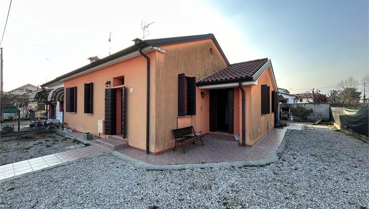 L’abitazione al piano terra è composta da ingresso, cucina-soggiorno organizzata in unico ambiente centrale, disimpegno, due bagni e camera da letto. La distribuzione interna risulta compatta e razionale, con ambienti ben collegati tra loro. Al piano seminterrato è presente un deposito, spazio accessorio utile per rimessaggio o magazzino, che amplia la funzionalità complessiva dell’immobile.