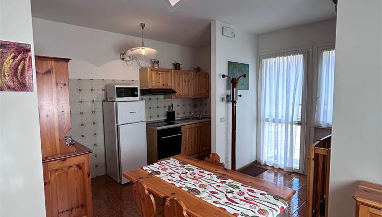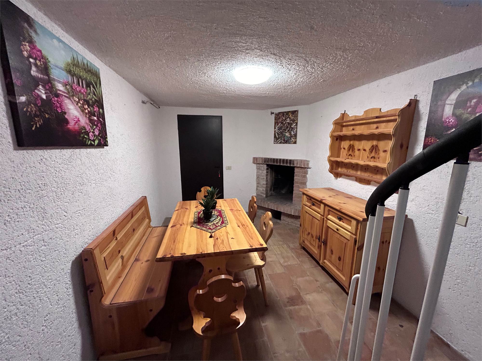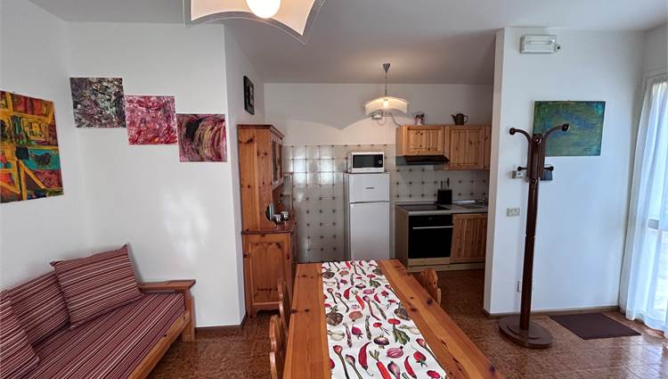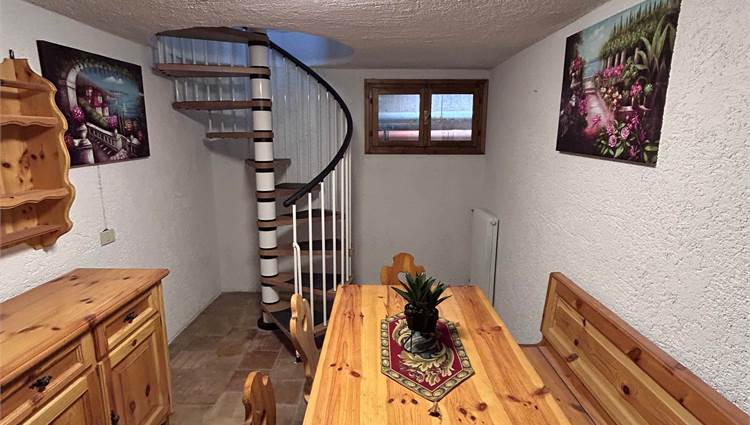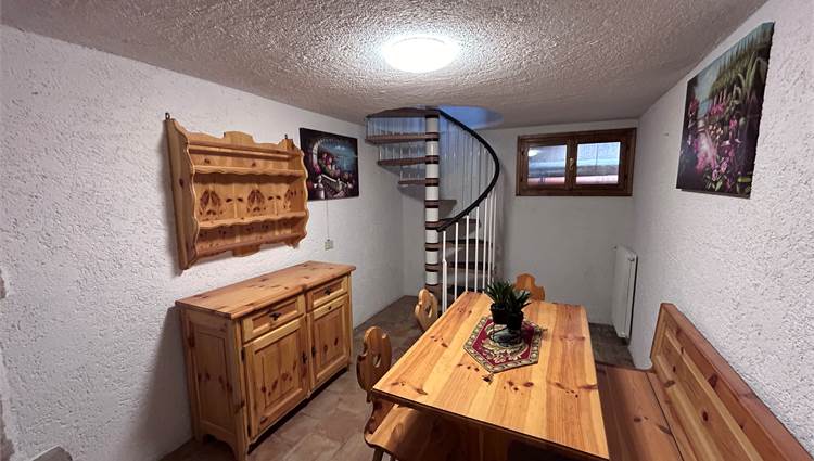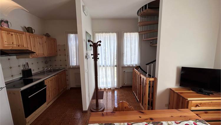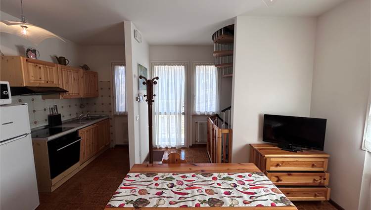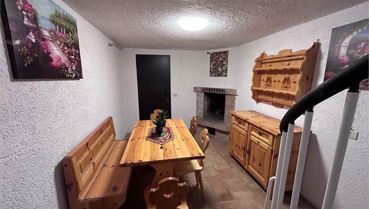 L’immobile si sviluppa con zona giorno al piano terra composta da soggiorno con cucina a vista, ambiente funzionale e accogliente. Al piano primo troviamo la zona notte con camera da letto, bagno e accesso ad un poggiolo, che garantisce uno sfogo esterno. Al piano seminterrato è presente una piccola taverna con camino, spazio accessorio versatile ideale come zona relax o ambiente multifunzionale. Completa la proprietà un garage, particolarmente comodo in contesto montano.